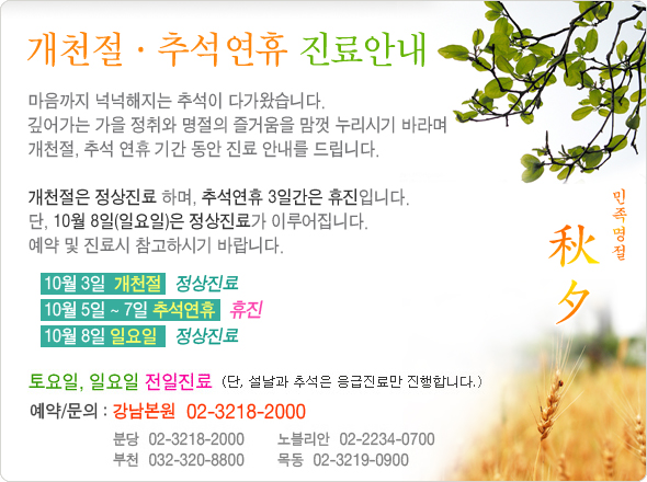 개천절, 추석연휴 진료안내