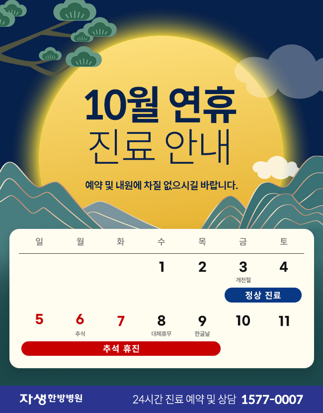 10월 추석 연휴 진료 일정 안내 (평촌)