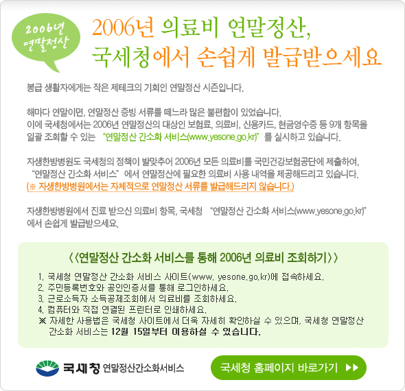 2006년 연말정산 서류, 국세청에서 쉽게 확인가능합니다.